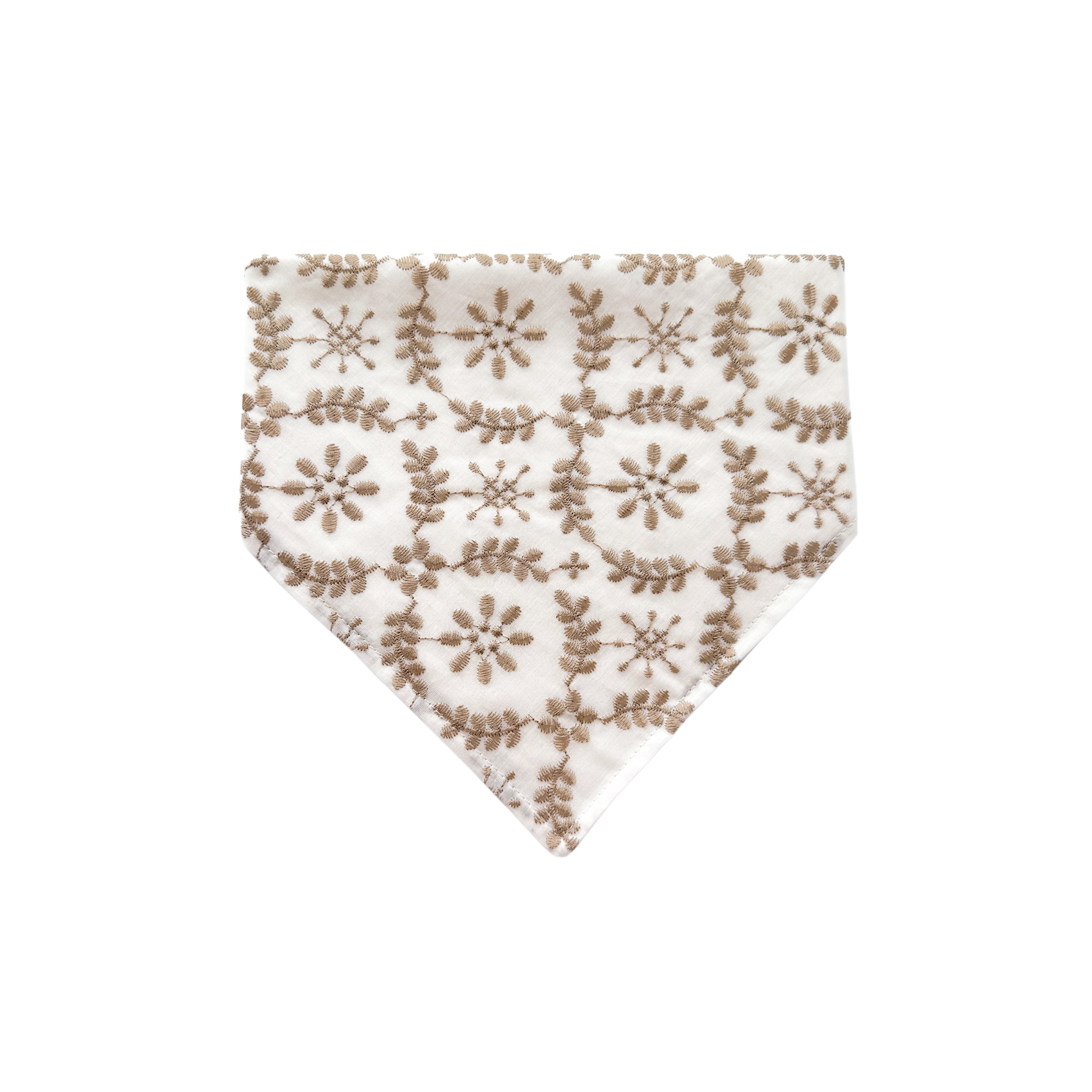 This is an embroidered cotton bandana on the front & a matching solid cotton on the reverse