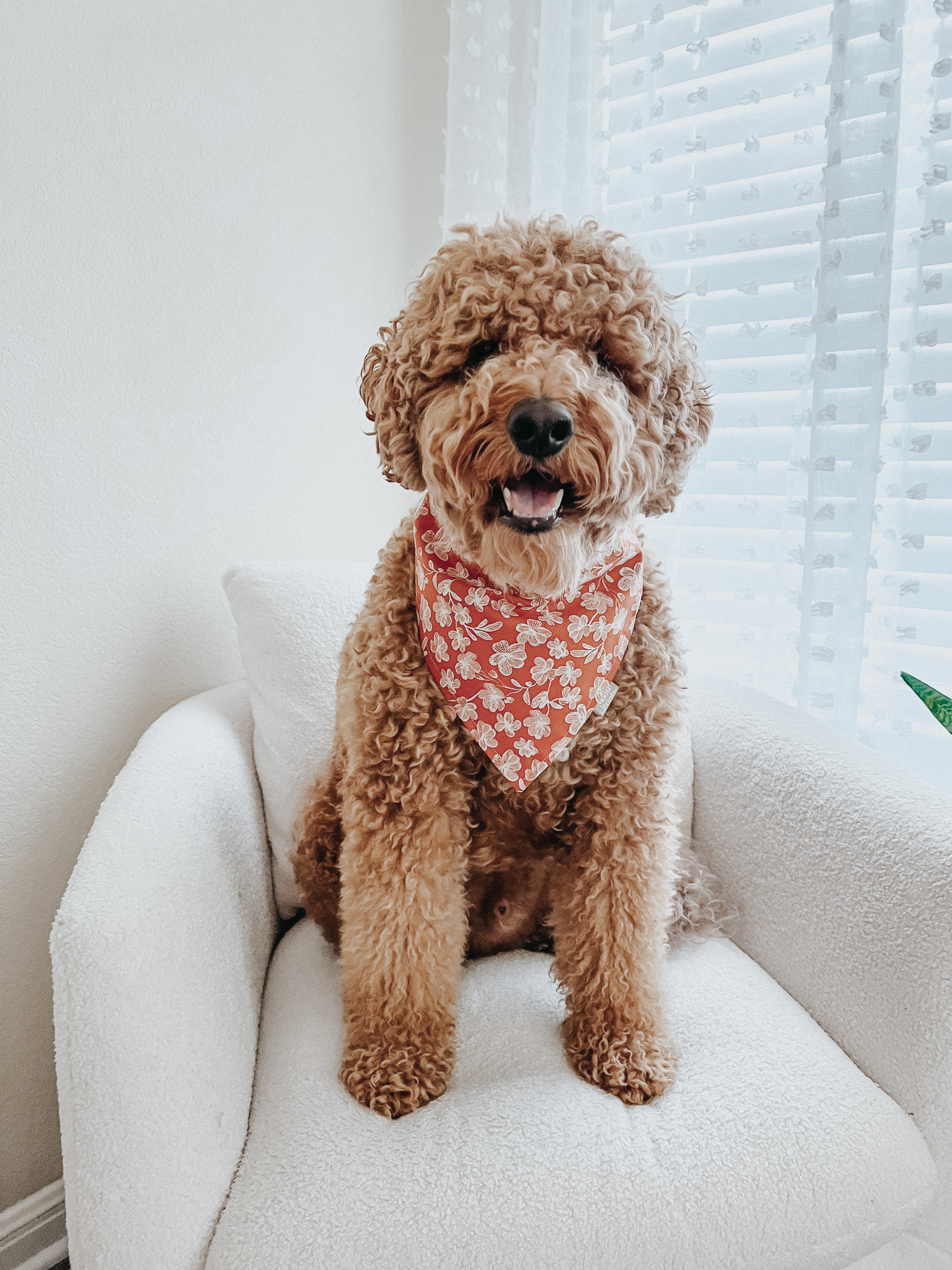 Our bandanas come in the traditional triangle tie-on style, with the option to add on snaps, free of charge. Bandanas come in extra small, small, medium & large (see above size chart). Please measure your dog’s neck (don’t forget to account for any floof) and leave sufficient space to tie the knot! If your pup is in between sizes, I recommend ordering a size up as the bandanas can be folded down for a perfect fit. This will also allow more print visibility.