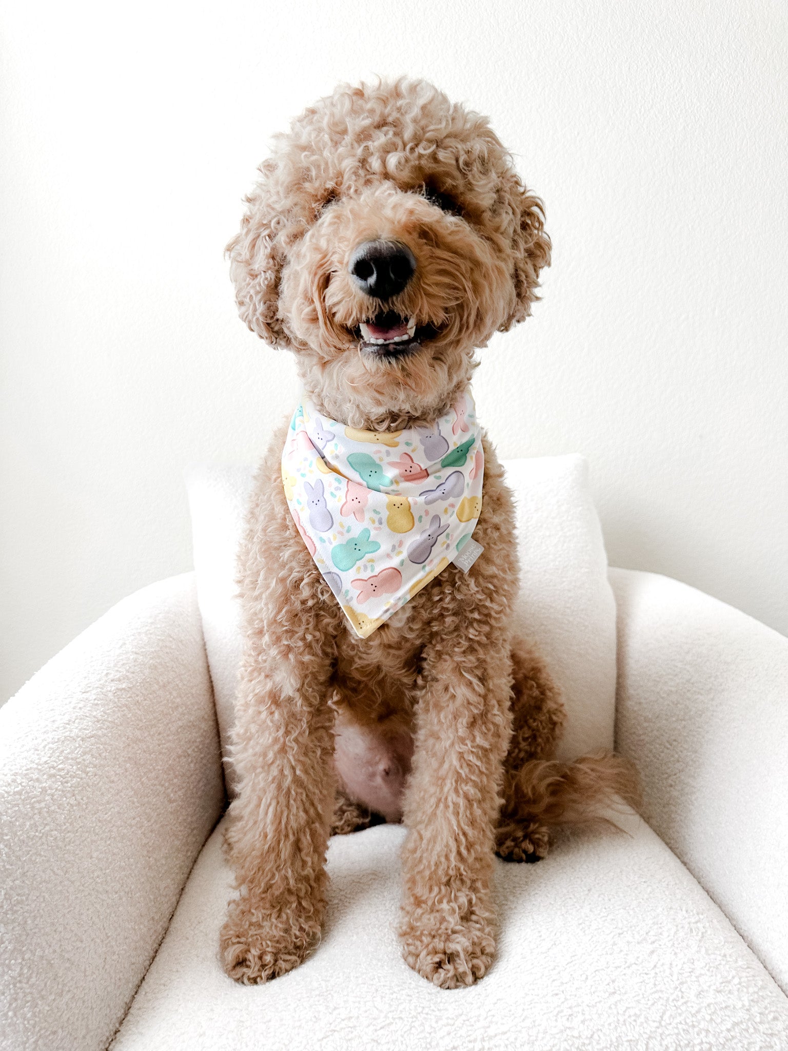 Our bandanas come in the traditional triangle tie-on style, with the option to add on snaps, free of charge. Bandanas come in extra small, small, medium & large (see above size chart). Please measure your dog’s neck (don’t forget to account for any floof) and leave sufficient space to tie the knot! If your pup is in between sizes, I recommend ordering a size up as the bandanas can be folded down for a perfect fit. This will also allow more print visibility.