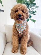 Our bandanas come in the traditional triangle tie-on style, with the option to add on snaps, free of charge. Bandanas come in extra small, small, medium & large (see above size chart). Please measure your dog’s neck (don’t forget to account for any floof) and leave sufficient space to tie the knot! If your pup is in between sizes, I recommend ordering a size up as the bandanas can be folded down for a perfect fit. This will also allow more print visibility.