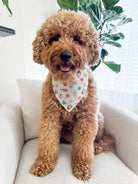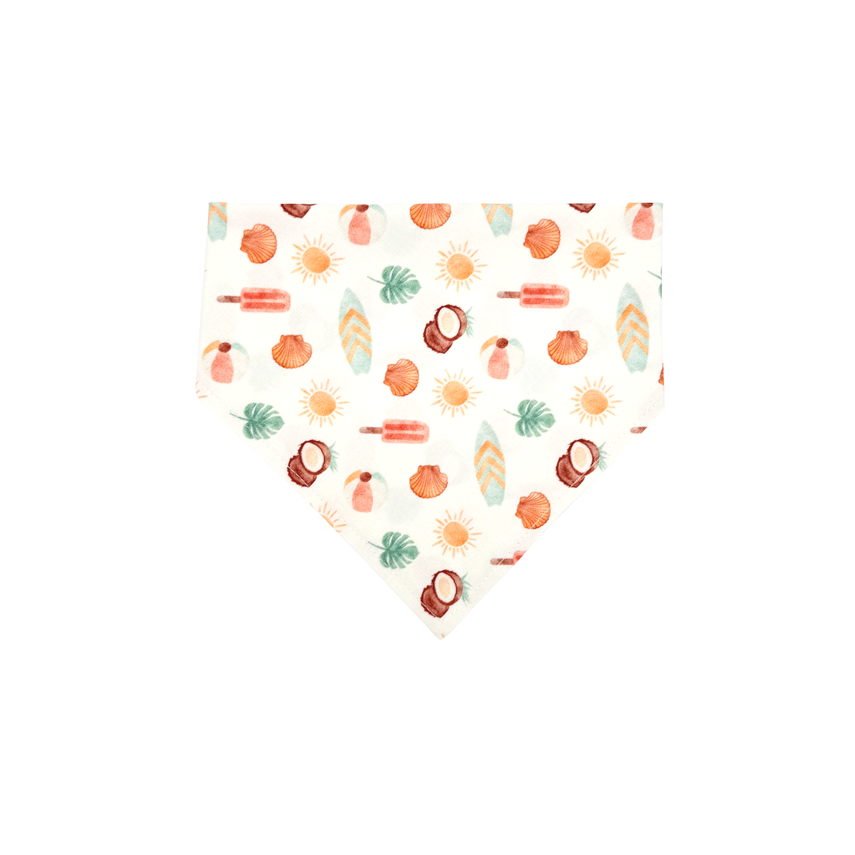 Our bandanas come in the traditional triangle tie-on style, with the option to add on snaps, free of charge. Bandanas come in extra small, small, medium & large (see above size chart). Please measure your dog’s neck (don’t forget to account for any floof) and leave sufficient space to tie the knot! If your pup is in between sizes, I recommend ordering a size up as the bandanas can be folded down for a perfect fit. This will also allow more print visibility.