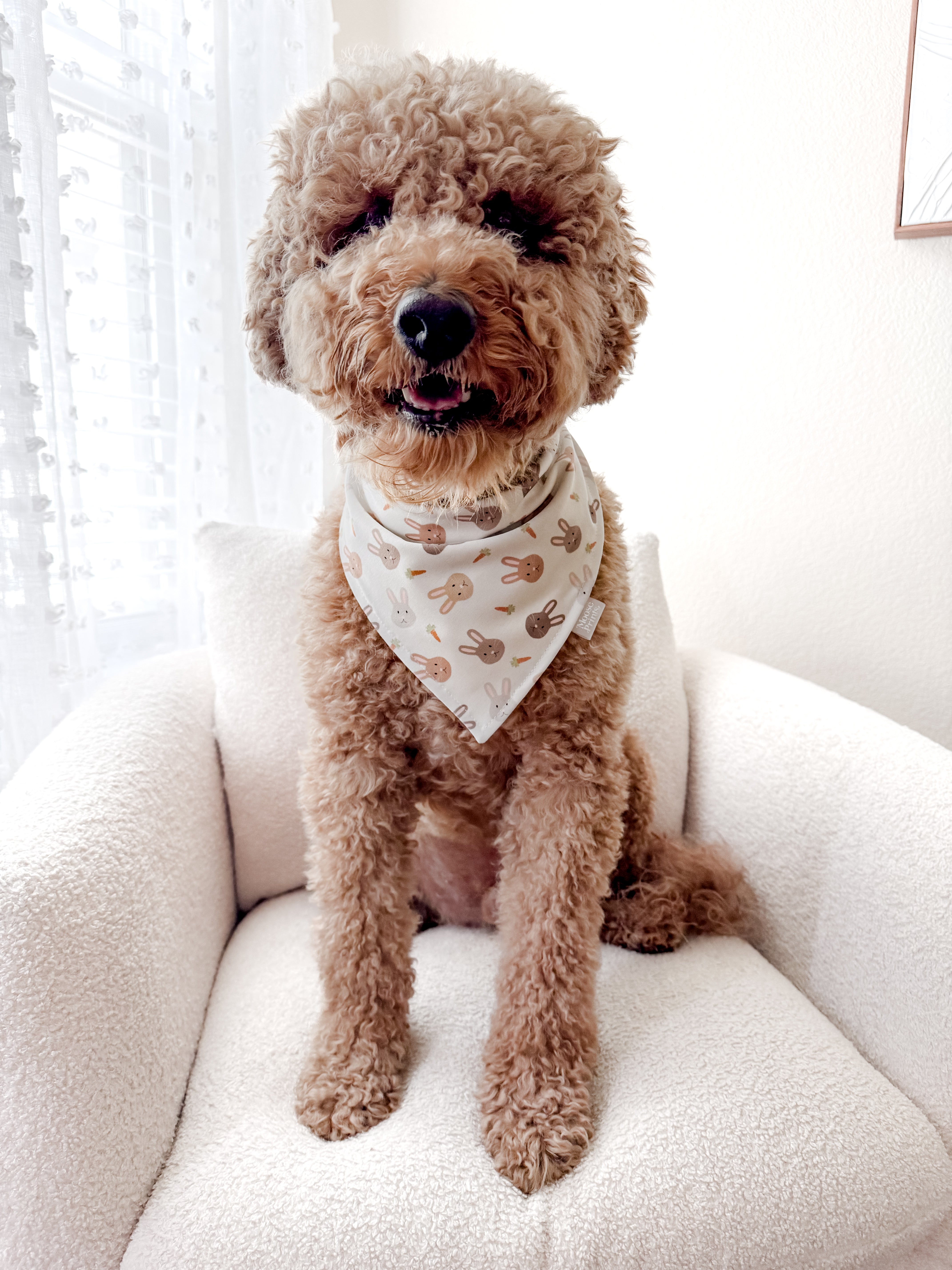 Our bandanas come in the traditional triangle tie-on style, with the option to add on snaps, free of charge. Bandanas come in extra small, small, medium & large (see above size chart). Please measure your dog’s neck (don’t forget to account for any floof) and leave sufficient space to tie the knot! If your pup is in between sizes, I recommend ordering a size up as the bandanas can be folded down for a perfect fit. This will also allow more print visibility.